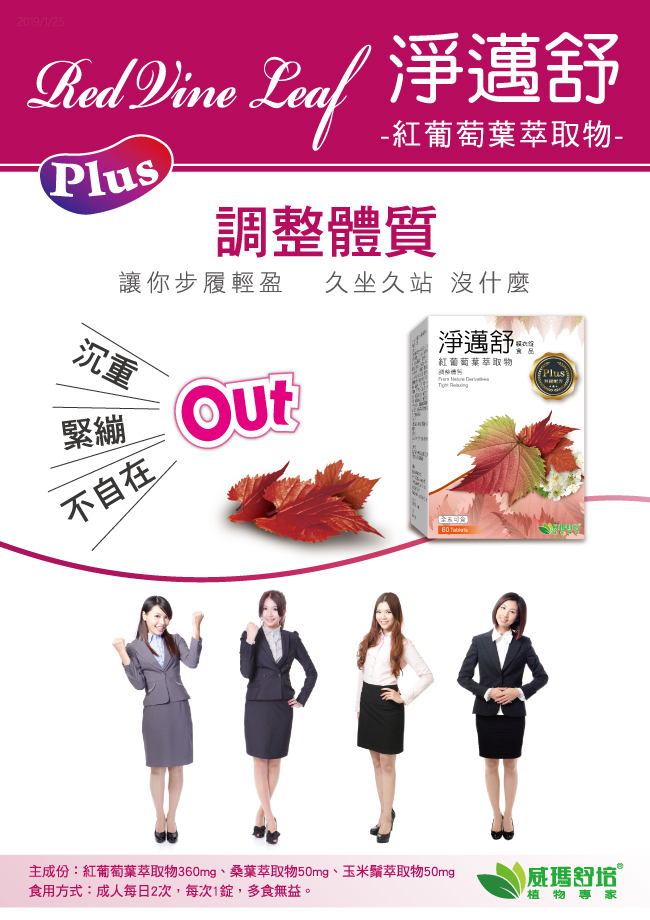 特 色:紅葡萄葉萃取物內含白藜蘆醇,調整體質。