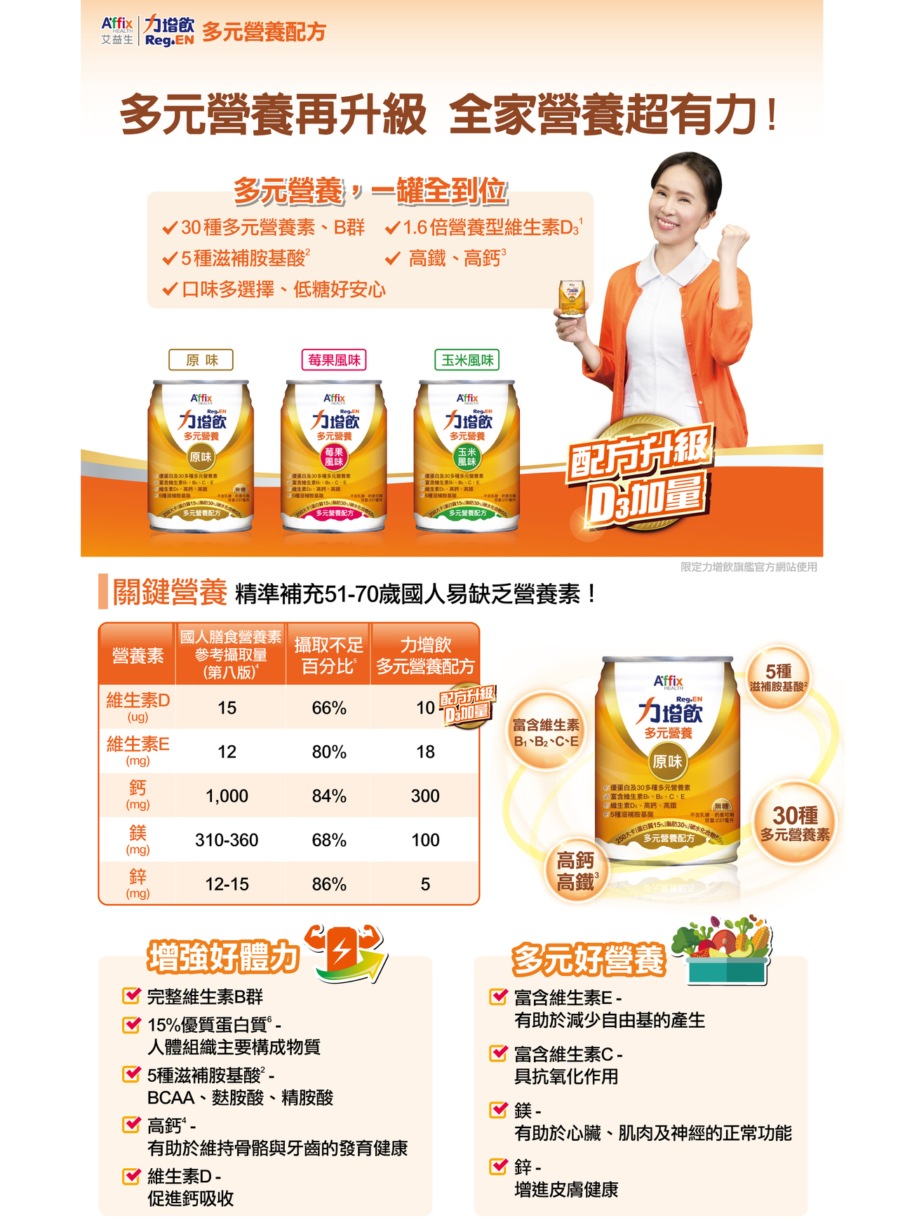 商品名稱:力增飲 多元營養配方 (無糖原味)