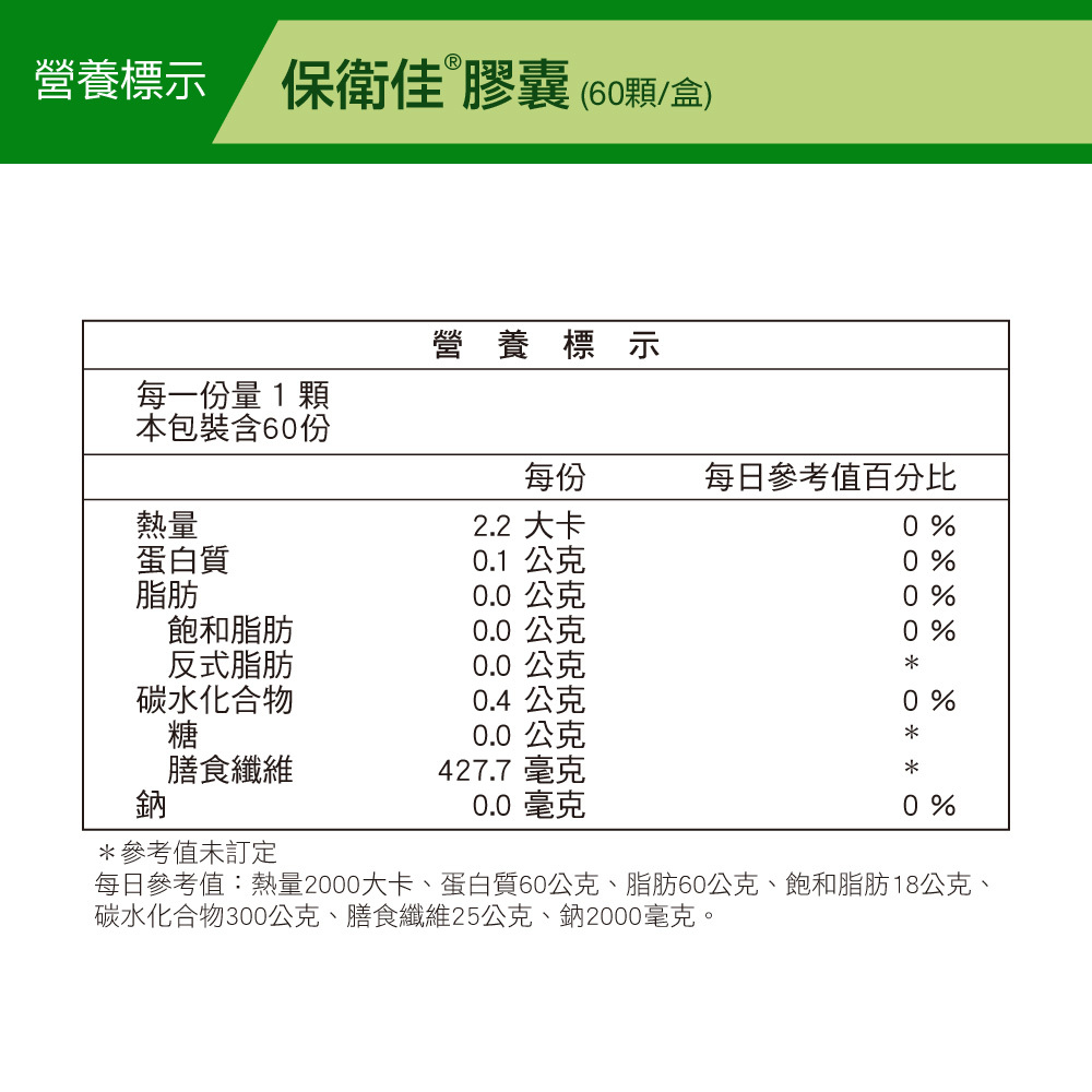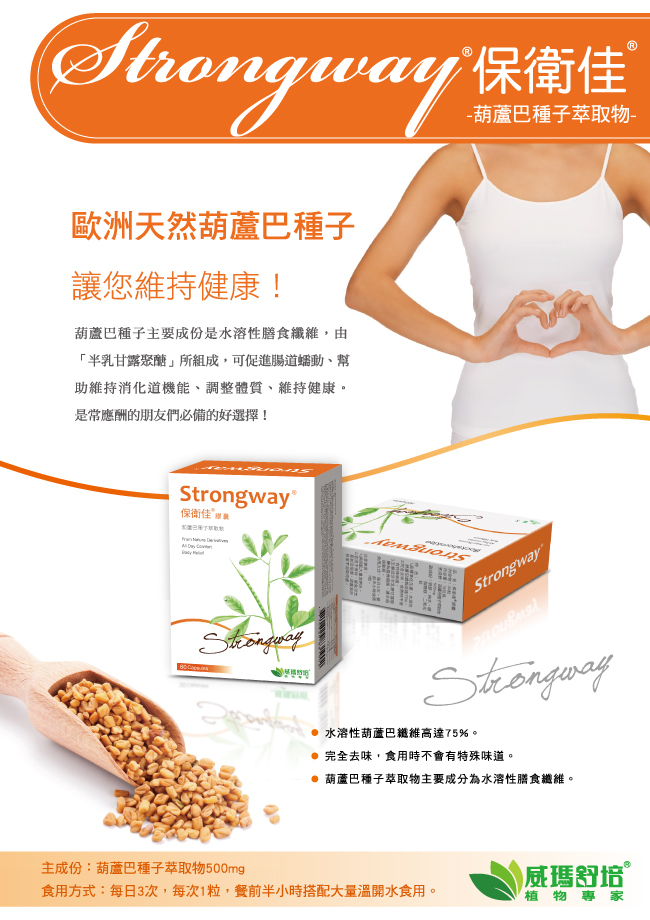 保衛佳成分:葫蘆巴種子萃取物500mg、硬脂酸鎂
