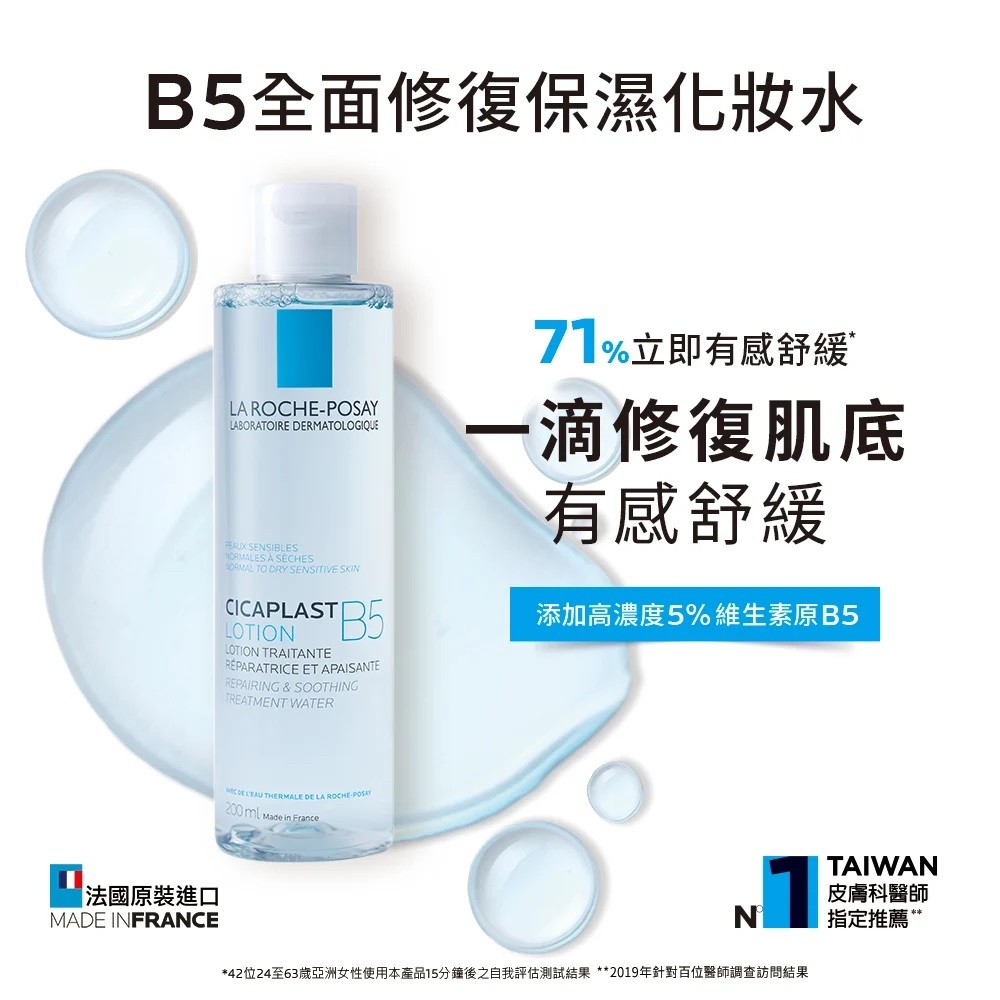 用法:每日早/晚取適量產品於掌心,倒取適量的量於化妝棉均勻輕拍於臉部,使用後可搭配B5全面修復霜使用,其舒緩保濕效果更佳。可作為日常化妝水使用,亦可隨時隨地使用、舒緩皮膚不適。