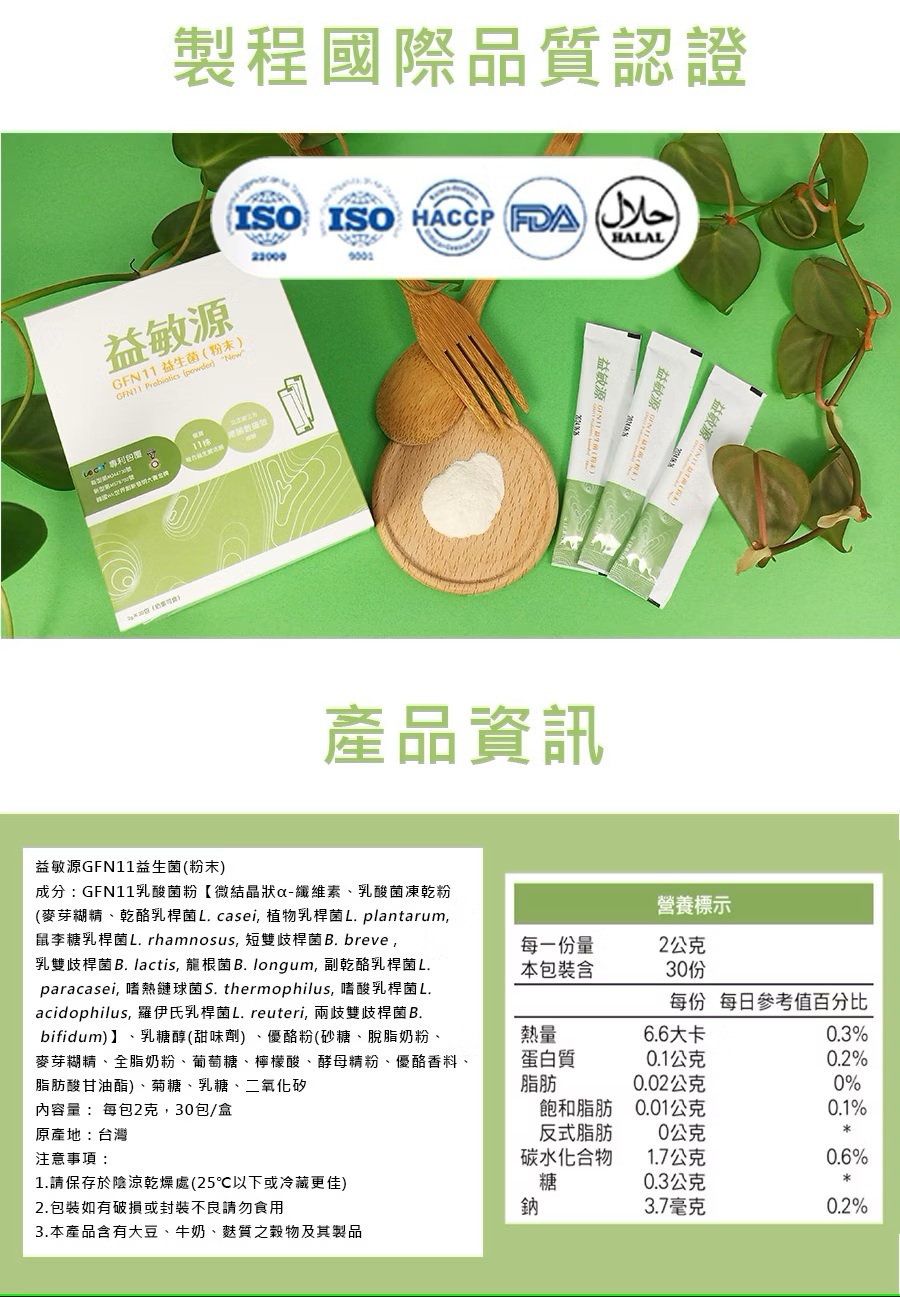 ◆中文品名:益敏源GFN11益生菌(粉末)